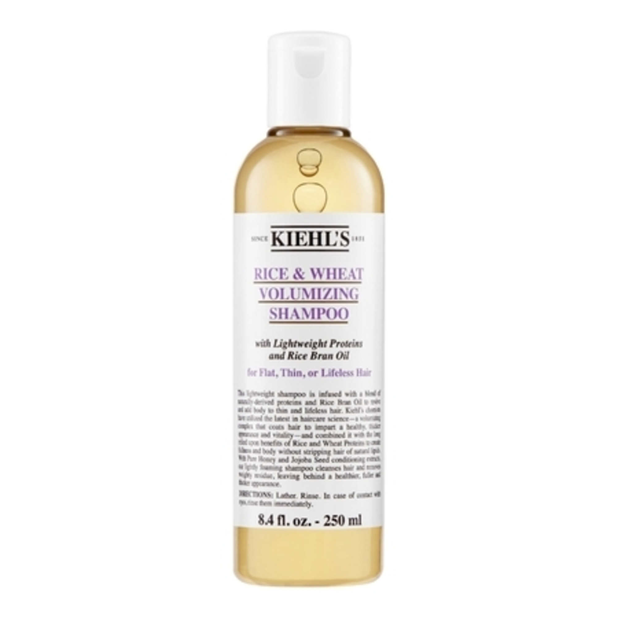 Infusé de protéines de riz et de blé, d'extraits régénérants de graine de jojoba et de son de riz , ce shampoing volumateur Kiehl's aide à donner du volume et de la souplesse tout en nettoyant en douceur.