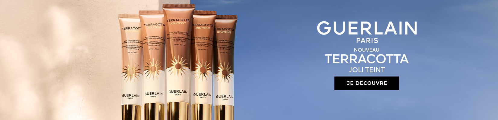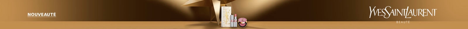 Mascara Volume Effet Faux Cils YSL, Fond de teint Double Wear Estée Lauder, Poudre bronzante Terracotta Guerlain, Rouge à lèvrez Loveshine YSL.