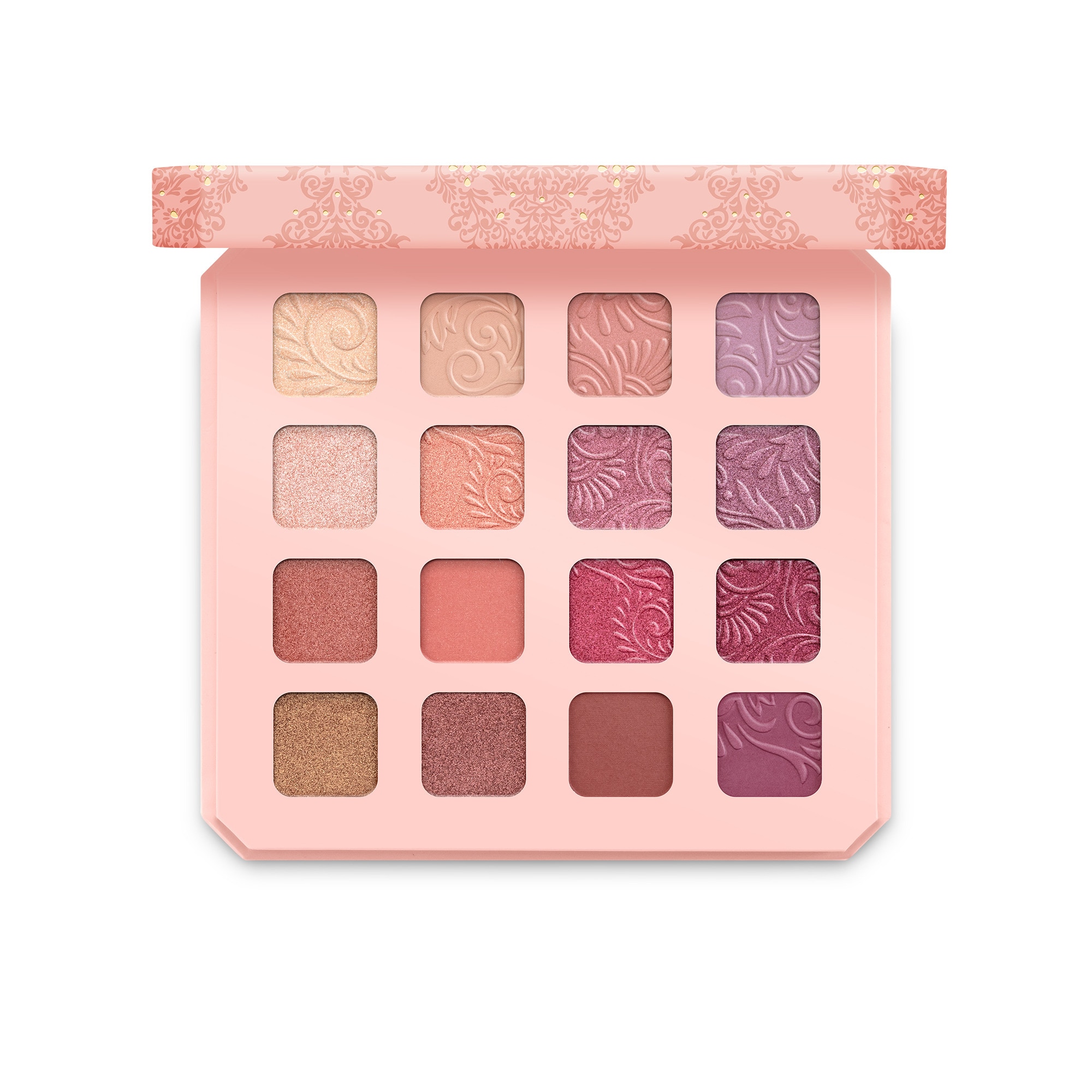 Composée de 16 ombres à paupières aux couleurs chaudes et solaires, cette palette est parfaite pour la saison estivale. Un précieux relief damassé traverse en continu une partie des godets.