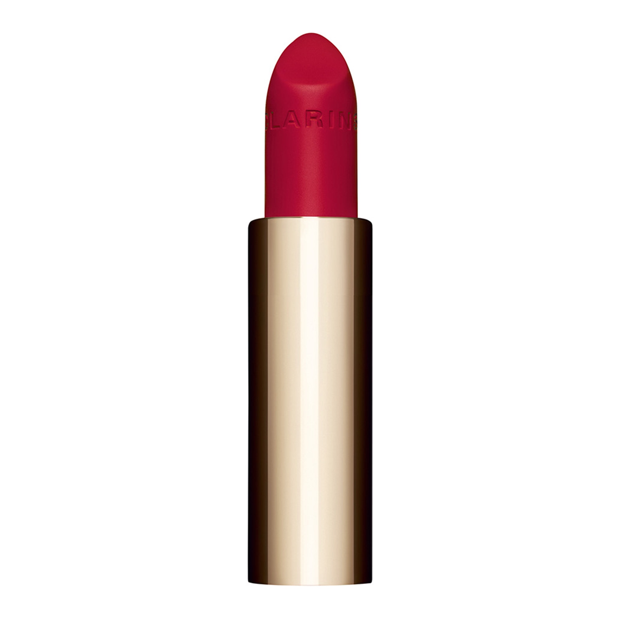 Joli Rouge Velvet au fini ultra mat. Sa formule hydratante et sa texture légère offrent aux lèvres une couleur intense à la luminosité inégalée, celle de l'iconique Joli Rouge Clarins