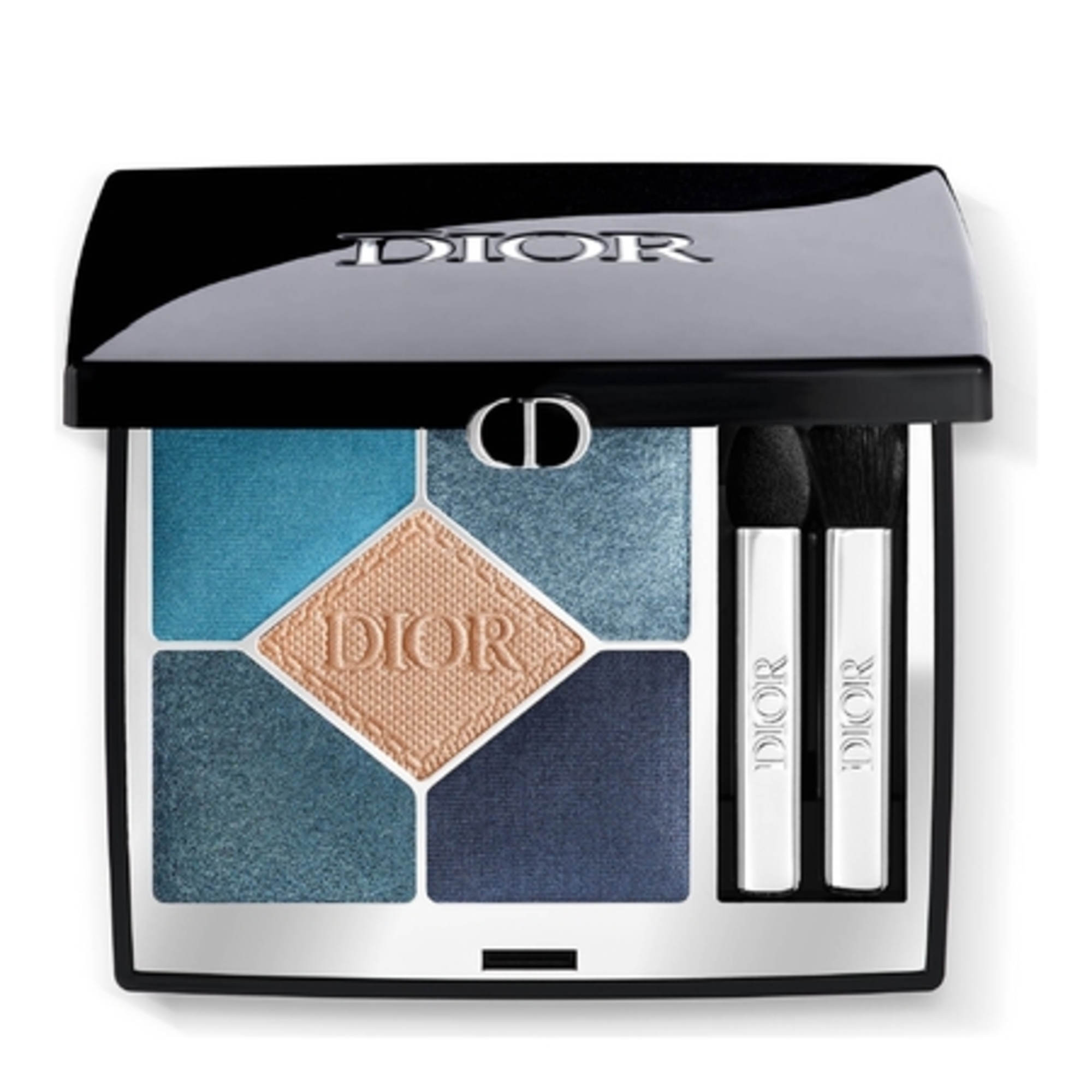 L’écrin Diorshow 5 Couleurs, paré de la signature de la Maison et à l'esthétique résolument moderne, contient deux applicateurs à simple embout et un miroir pour appliquer et dégrader ses fards à paupières.