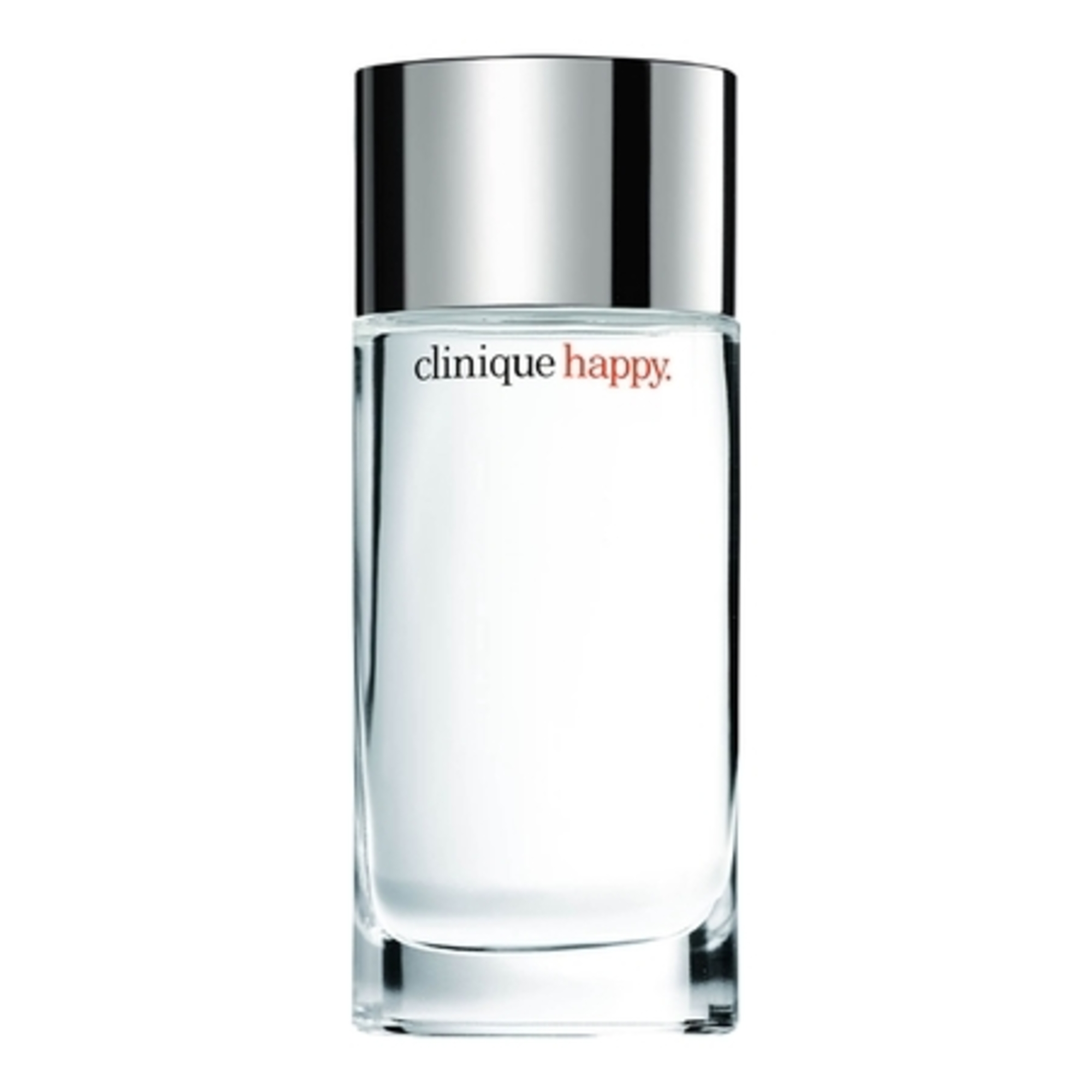 L'eau de parfum Clinique Happy encapsule la joie dans un flacon épuré, en verre transparent, surmonté d'un capot noir brillant.
