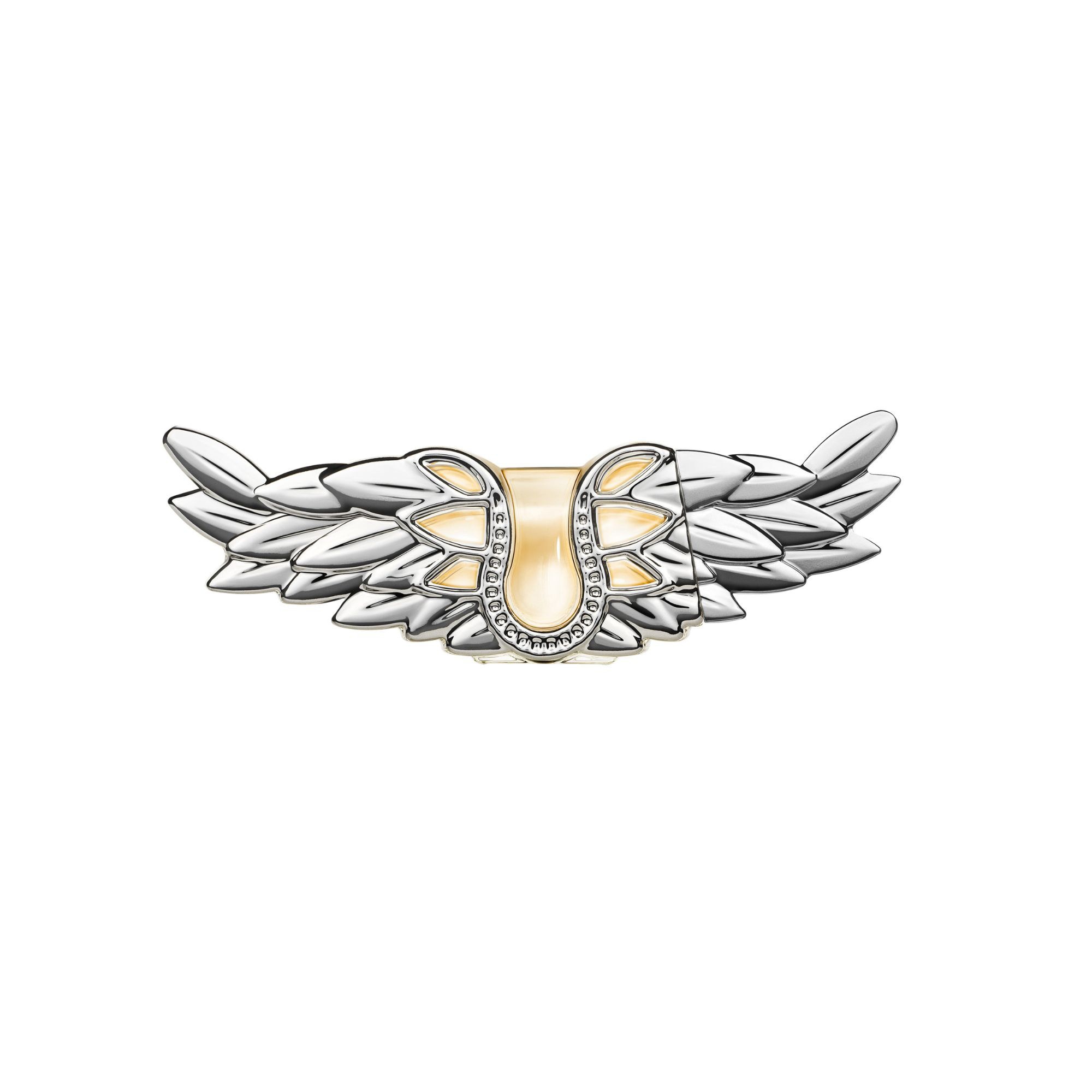 Véritable symbole de liberté, ce flacon en forme d'aile défie avec audace les standards de la parfumerie. Avec sa finition métallique, semblable à un bijou, il est à la fois un accessoire de mode et un talisman.