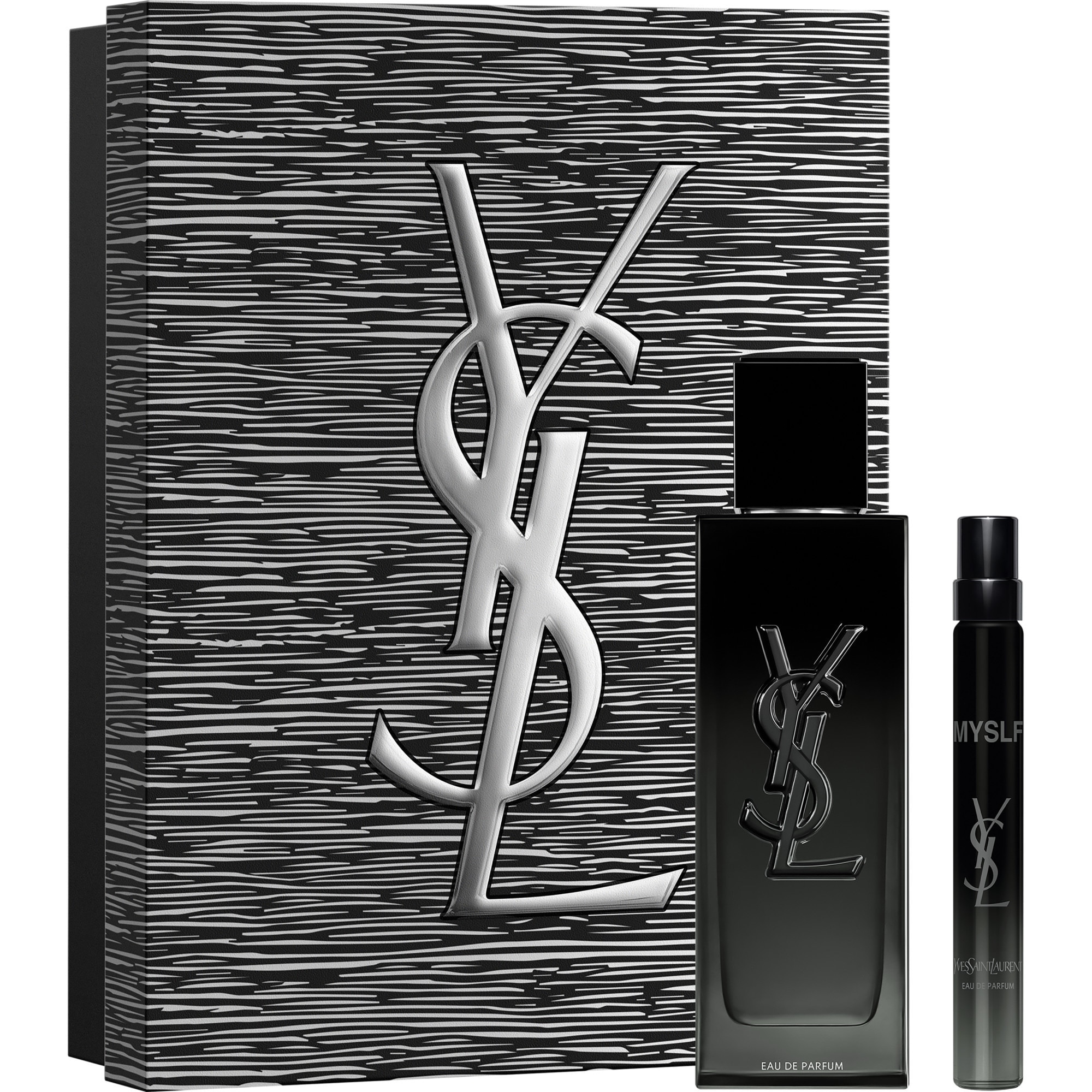 YSL Beauté vous invite à célébrer des fêtes de fin d'année plus Couture que jamais. Offrez ce magnifique coffret paré d'argent brossé contenant : l'Eau de Parfum MYSLF 60 ml et l'Eau de Parfum MYSLF 10 ml format voyage. Préparez-vous à briller pour la nuit la plus attendue de l'année. MYSLF, pour l'homme que vous êtes, tout en nuance, unique. Une affirmation d'une masculinité moderne, acceptant toutes ses facettes et émotions. L'OLFACTION Le premier boisé floral des parfums masculins Yves Saint Laurent, au sillage moderne, contrasté et puissant. En tête, un accord bergamote de Calabre et vert de bergamote, pour une sensation fraîche, verte et vibrante. En coeur, un absolu de fleur d'oranger de Tunisie enivrant qui signe la fragrance, cultivé exclusivement pour Yves Saint Laurent Beauté. En fond, un accord de bois sensuels et texturés, avec un coeur de patchouli d'Indonésie et de l'Ambrofix?, apportant puissance et tenue. Yves Saint Laurent Beauté soutient une gestion des forêts respectueuse de l'humain et de l'environnement. Tous les formats de MYSLF sont rechargeables. La recharge de l'Eau de Parfum permet d'économiser 43% de verre, 75% de métal, 21% de plastique, 16% de papier*. MYSLF, mon parfum YSL.