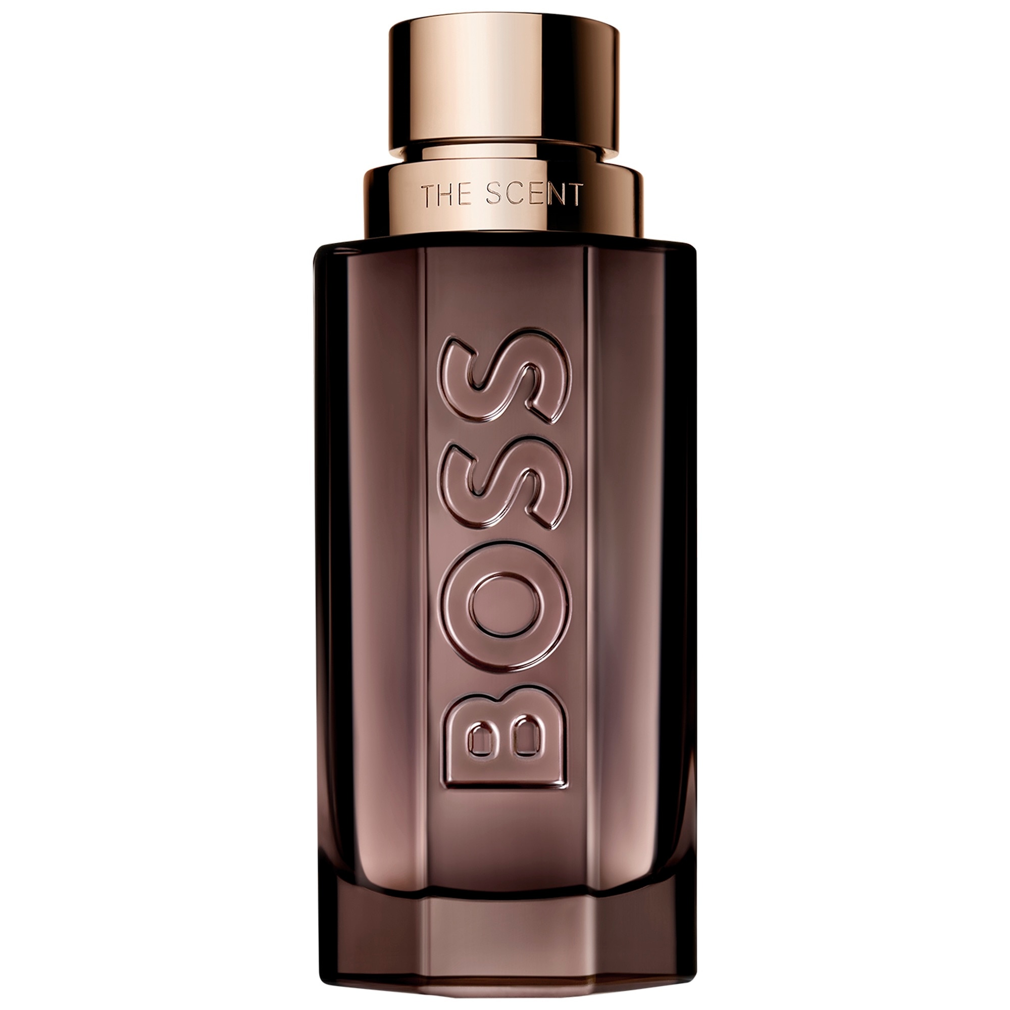 BOSS The Scent Parfum pour homme réinvente la sensualité avec son flacon saisissant, orné du logo BOSS sur un verre laqué taupe profond et surmonté d'un capuchon rose doré rehaussé d'un monogramme Double-B BOSS. Sa silhouette aux multiples facettes capte l'attention et évoque l'harmonie fascinante d'un duo charismatique.