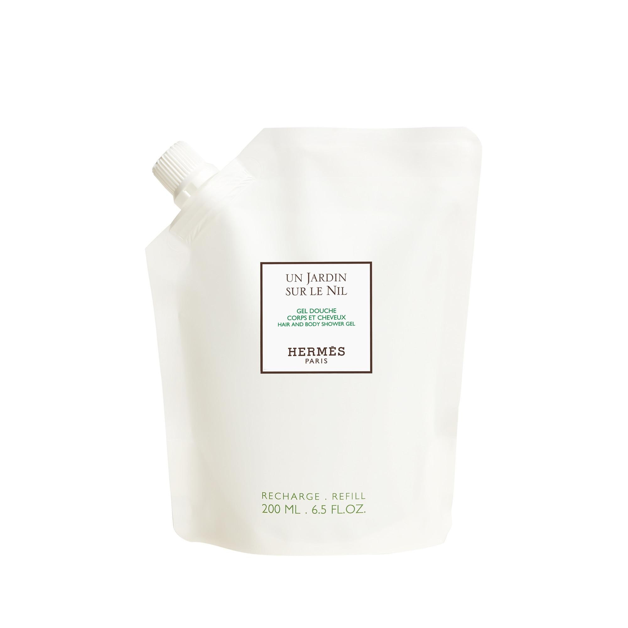 Entièrement recyclable, la recharge permet de remplir le flacon en verre du gel douche Un Jardin sur le Nil de même contenance.