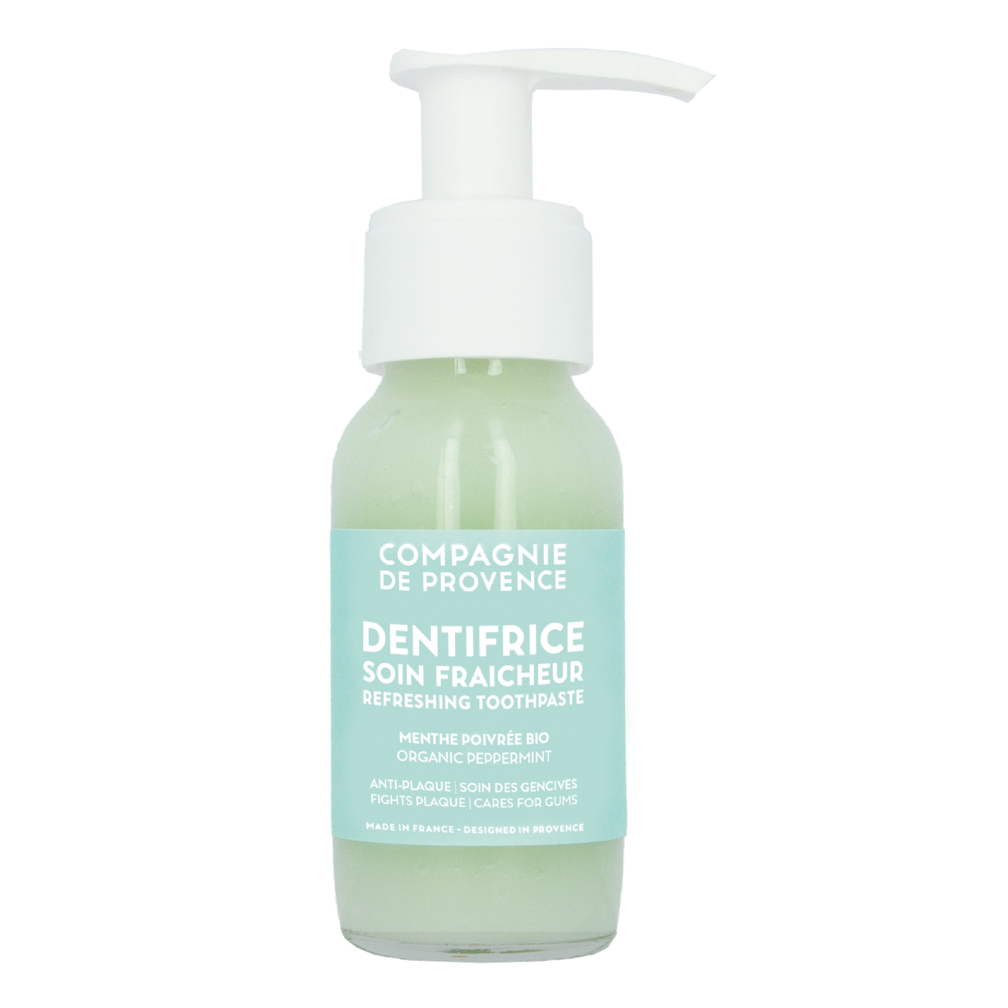 Mentha Piperita Oil* - Huile essentielle de menthe poivrée d'origine Provence, issue de l’agriculture biologique. Elle possède des propriétés rafraichissantes intenses et permet de rafraichir l’haleine pour garder la sensation d’une bouche propre. Reconnue pour ses propriétés antibactériennes, elle aide également à réduire la croissance des bactéries responsables de la plaque dentaire.