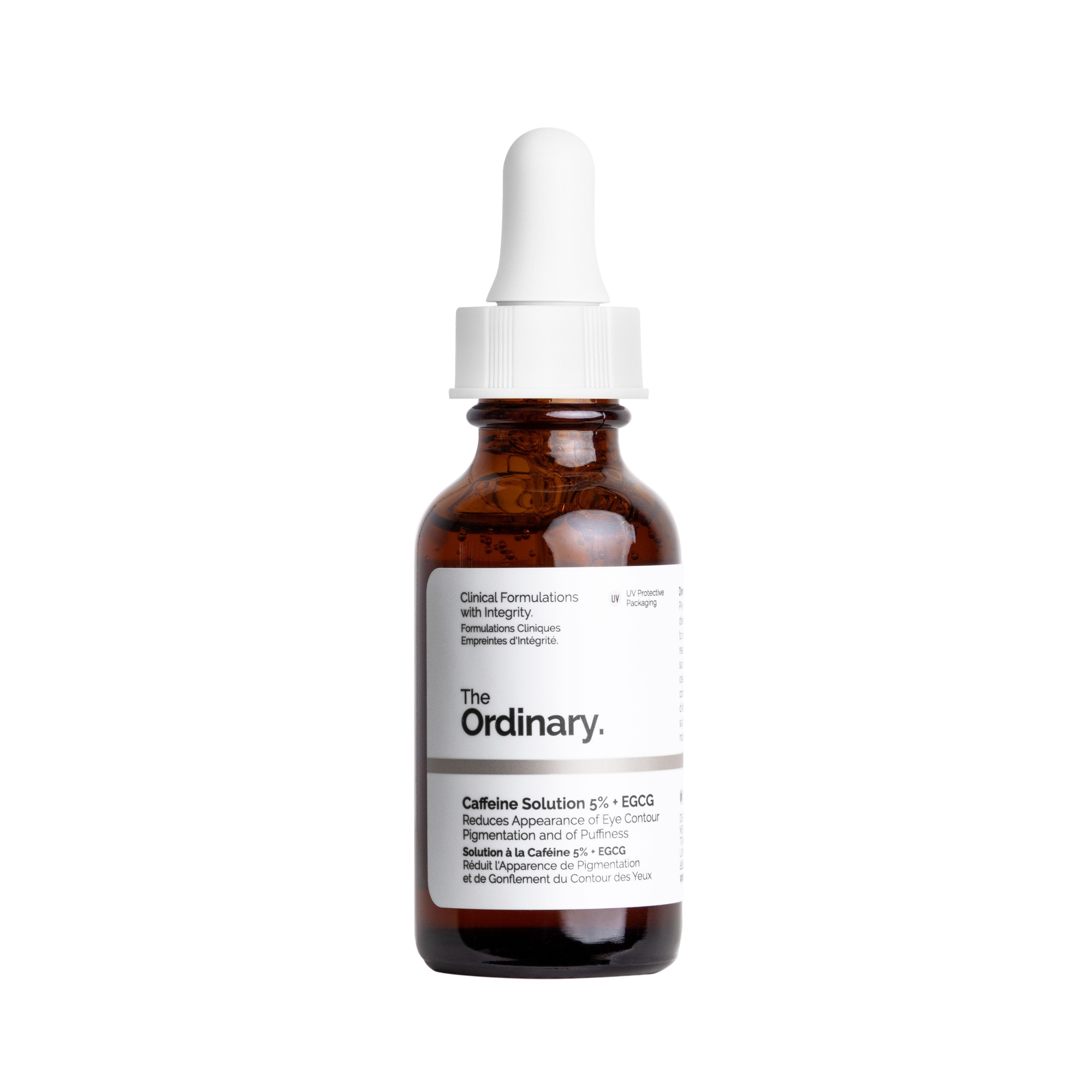 La Solution à la Caféine 5% + EGCG est un sérum efficace à base d'eau qui cible les cernes et les poches autour des yeux, pour apporter de l'éclat au contour des yeux. Formulé avec une concentration de 5 % de caféine et d'épigallocatéchine gallatyl glucoside (EGCG), ce sérum puissant contribue à diminuer les signes de fatigue et favorise un regard plus lumineux. La caféine contribue à réduire les poches, tandis que l'EGCG aide à atténuer l'apparence des cernes.