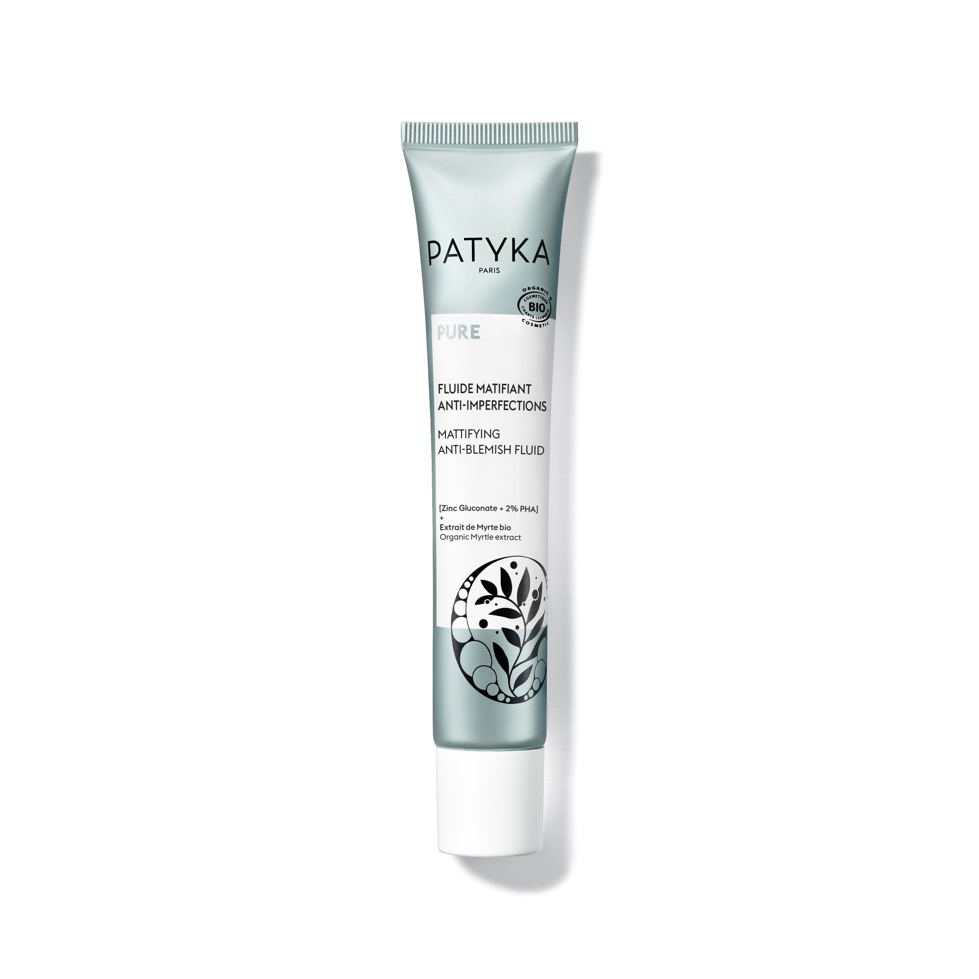 Ce soin hydratant multi-correcteur réduit les brillances et l'excès de sébum tout en améliorant visiblement l'aspect de la peau. Grâce à un duo [Zinc Gluconate + PHA] et à un extrait de Mélisse bio anti-stress (brevet déposé PATYKA***), il corrige et prévient 7 types d'imperfections. Sa formule effet buvard matifie instantanément et durablement la peau et la laisse visiblement plus nette en 7 jours seulement*. Formulé sans alcool. MATIFIE IMMÉDIATEMENT ET DURABLEMENT Poudres de Tapioca et de Silice Extrait de Myrte bio CIBLE 7 IM¨PERFECTIONS brillances - pores dilatés - points noirs - boutons rouges - boutons blancs - marques résiduelles - rougeurs [Zinc Gluconate + 2% PHA / Gluconolactone] ANTI-STRESS Extrait de Mélisse bio [Brevet déposé PATYKA***] HYDRATE Complexe de Sucres végétaux breveté