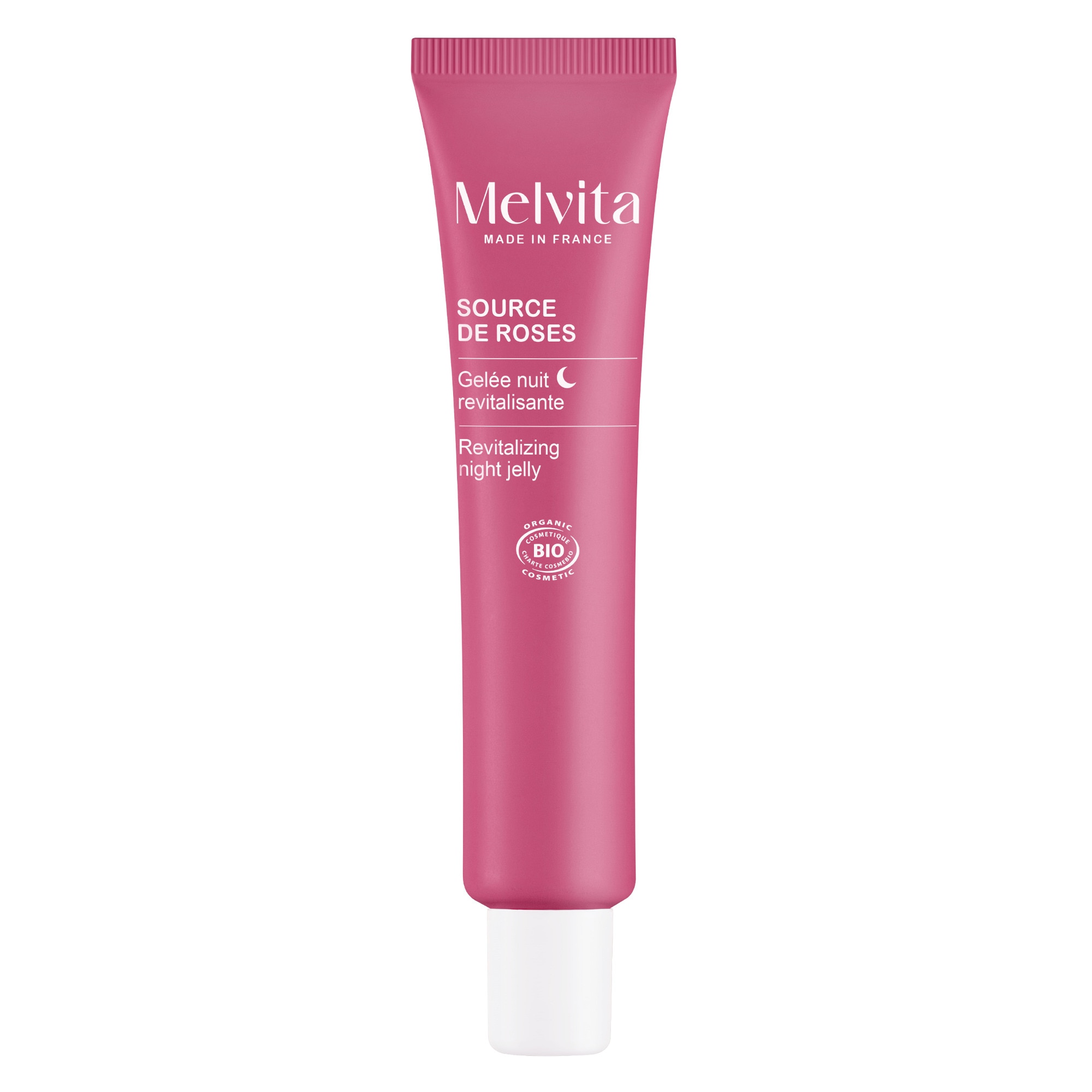 La gelé de nuit revitalisante certifiée bio Source de Roses s'applique chaque soir sur le visage et le cou.