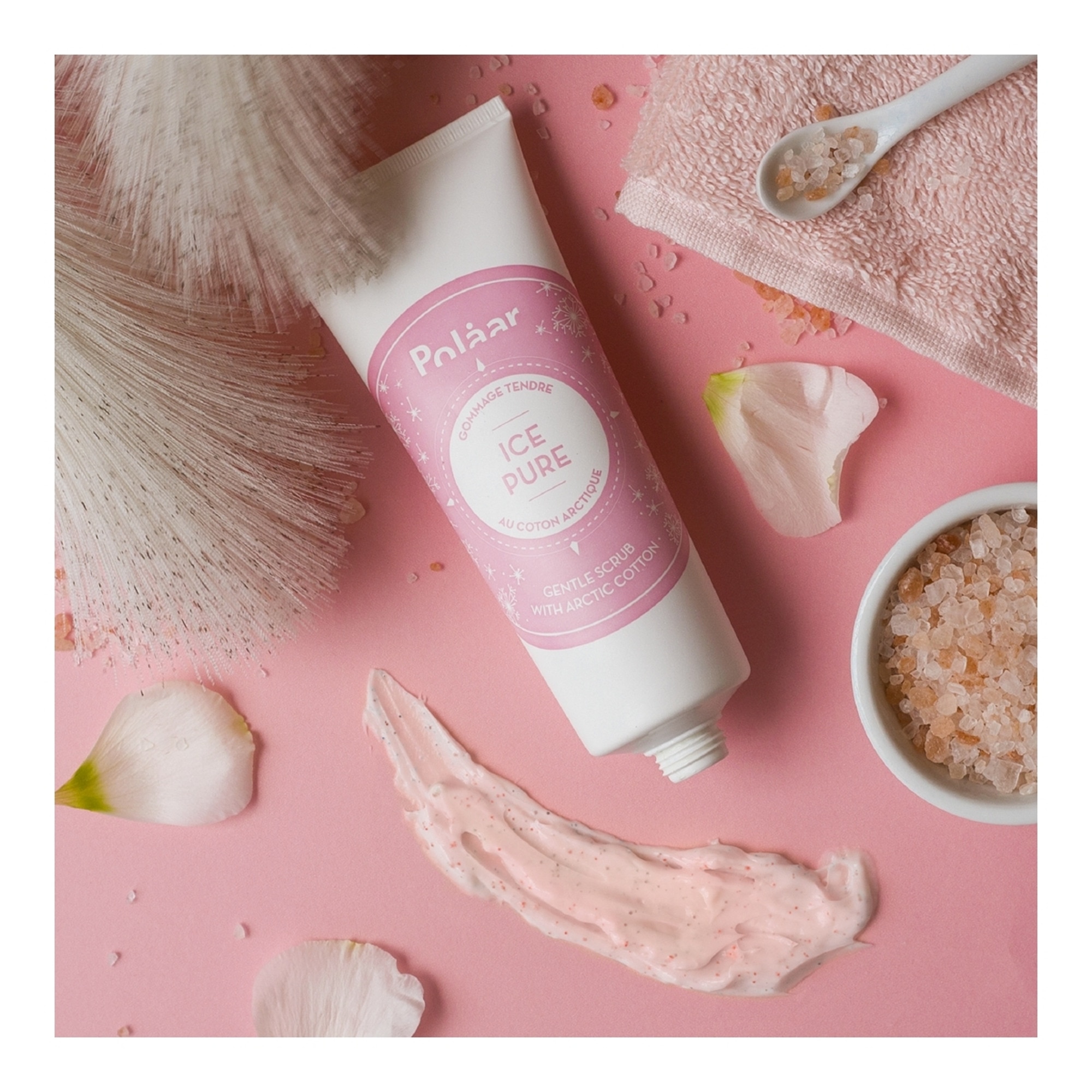 C'est dans les grandes étendues vierges et silencieuses de la Toundra que pousse à l'état sauvage le Coton Arctique. Toute la douceur des soins IcePure est puisée au coeur de cette délicate fleur au duvet blanc et soyeux ondulant au gré du vent. Ce Gommage Tendre délicat permet d'éliminer en un mouvement les cellules mortes et les impuretés accumulées tout au long de la journée. Son plus : 2 actions exfoliantes grâce à 2 tailles de grains différentes ! D'un côté, l'action gommante des billes de silice qui permettent de décoller toutes les cellules mortes pour régénérer le derme, de l'autre, l'action plus en surface des micros grains de lave volcanique qui améliorent la texture de la peau. Les silices et la lave volcanique sont 100% naturels et biodégradables. Cette action profonde est adoucie par sa texture crème qui préserve le film hydrolipidique. Enrichi en Coton Arctique aux propriétés hydratantes, reminéralisantes et adoucissantes, ce gommage révèle la pureté originelle de la peau. La peau est plus lisse, hydratée, éclatante et douce.