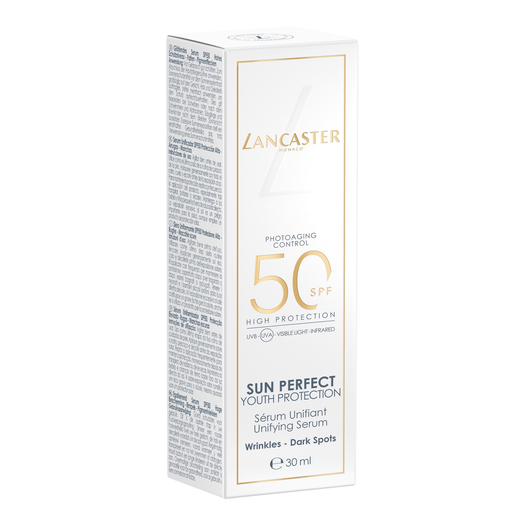 Le nouveau Sérum Unifiant SPF50 Sun Perfect de Lancaster est un concentré puissant qui offre une protection solaire ultra-large avec une efficacité anti-âge et réparatrice. Il inverse les signes visibles de l'âge causés par le photovieillissement.